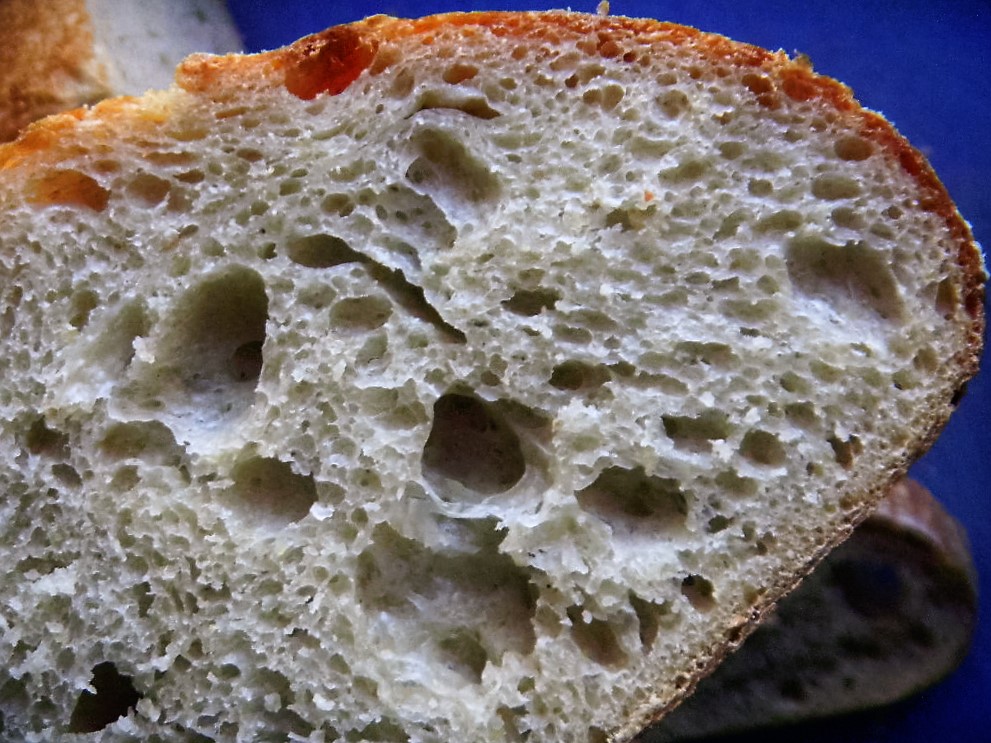 For a brand new corn and potato starter only 5 days old, this bread really stunned Lucy. It has only the mildest of sour but it is fairly open, glossy, soft and moist on the inside. It isn't super open for a 15% whole grain bread but the rest of the sought after crumb characteristics are there in spades. The girls are going to like the left over cranberry, stuffing and turkey sandwiches we will make with this bread. This is just the kind of bread they love. You have to love Clayton!