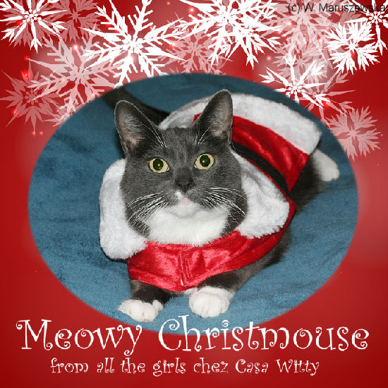 Very impressed that you were able to get Poppy to sit still long enough in a Santa suit to take a photo :). Mine last about 15 seconds! He looks like my Misty...they could be twins.