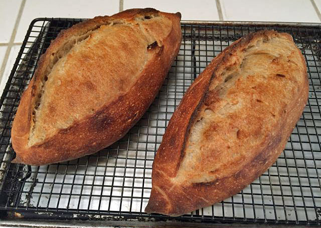 I also baked a couple of San Joaquin Sourdough bâtards. These were cold retarded 36 hours and have been frozen to eat later.