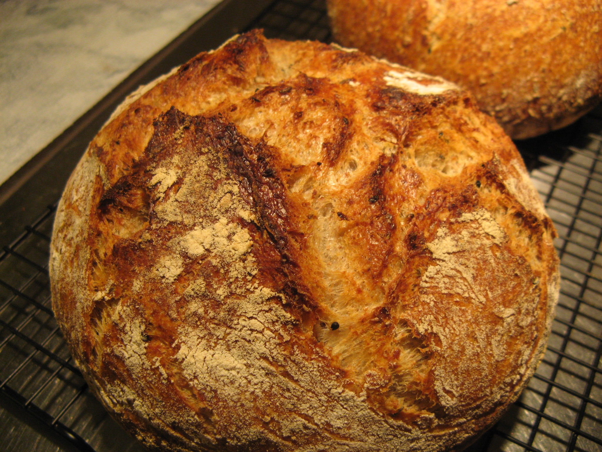 Here is the same bread baked on stones, with regular scoring before baking: