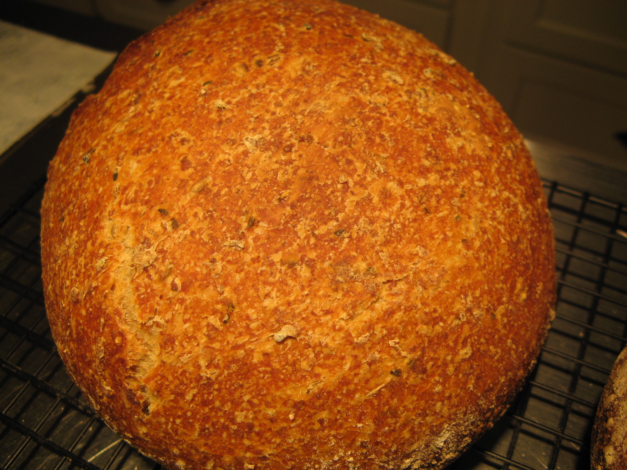 Here is the one baked seam-side up in the pot, with the natural bloom: