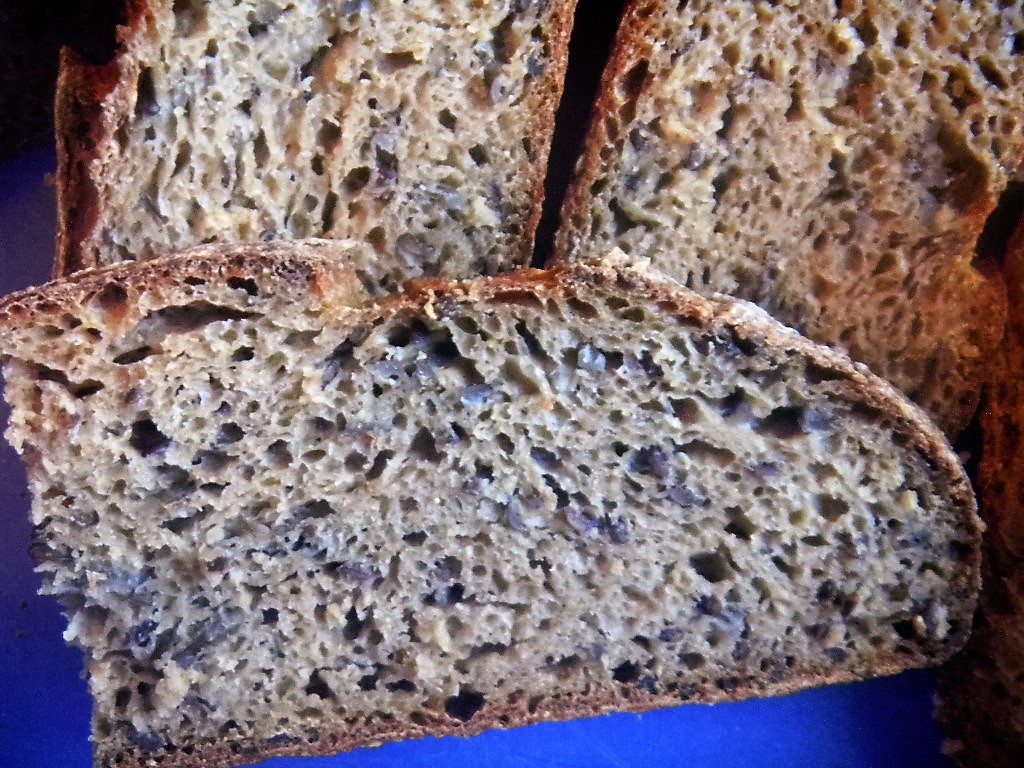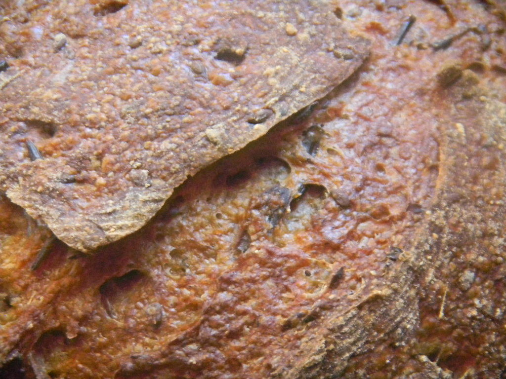 We turned off the oven and let the bread remain on the stone with the oven door ajar to further dry put and crisp the crust. It spread more than sprang and bloomed well under steam and also browned up nicely, with small blisters, once the steam was removed' The crust came out fairly open for a 100% whole grain bread with a huge porridge add in. The taste was good but this is one bread that isn't a rye one where a good dose of aromatic bread spices to perk it up some. Maybe it is the boring rice porridge at fault..... that sort of flattened the taste a bit but nothing the wonderful aroma of some caraway, fennel, anise and coriander won't quickly fix. It is an 8 that could be 10.
