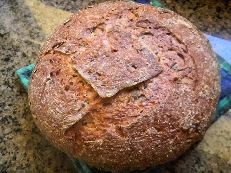 My head is spinning from that ingredients list... On the other hand, that looks like a lovely loaf of bread. The proof of the pudding is, as always, in the eating, so looking forward to see how it scored.