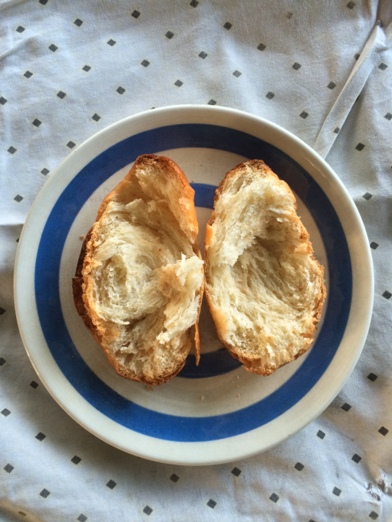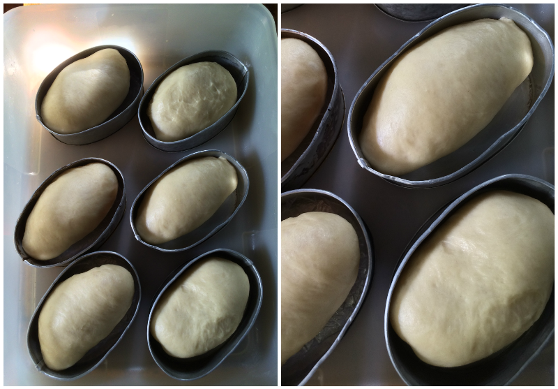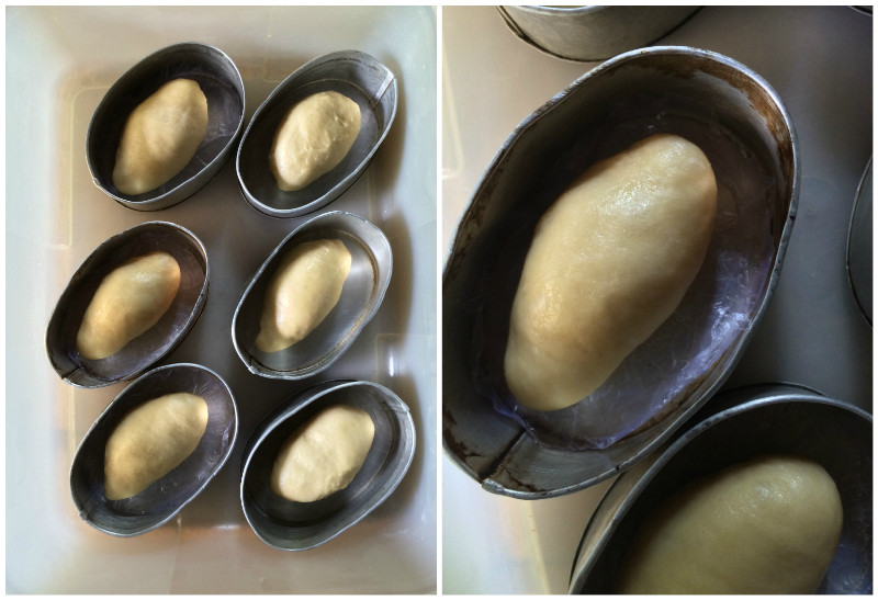 I used my go to sweet dough and kneaded it very well with the usual overnight fermentation. I divided it into 6 pieces about half the size of my enamorada last week. I pre-shaped them into rounds and rested them for 10 minutes. After 10 minutes, I shaped them into mini batards and proofed them in my oiled and lined mini llaneras.