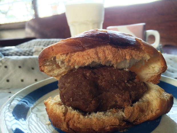 I've thought of just slathering the cookie dough on top but I realized I won't be able to put as much cookie dough as I want to so I just split my rolls in half and stuffed giant gobs of cookie dough. That's where the name came from: Soft cookie dough between crispy bread which is the inverse of melon pan's soft bread underneath crispy cookie. Still if I have done it as originally planned it will still be reversed; soft cookie dough on top of crispy bread!