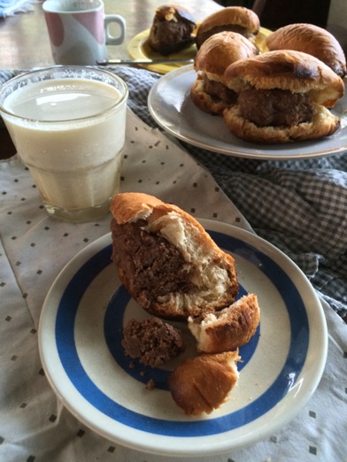 You could definitely tell the crispness of the bottom and the sides of the roll in this photo, the crust has a nutty toasty flavor. The crumbs is fluffy, buttery and not so sweet. The cookie dough is addictive! I've already eaten a cup before stuffing the rolls; it's rich, buttery, sweet, chocolaty and just so delicious. The roll balances the cookie dough flavor and they go really well with milk or coffee. I went with milk because I think it is a cookie's or even cookie dough's best friend. This will really bring the child out in anyone it is served.