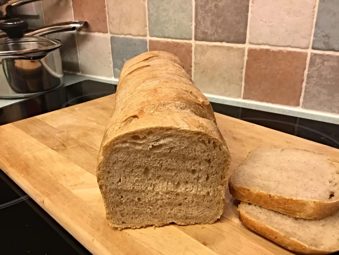well first loaf baked using no knead method, rose really well but I think texture is bit close.