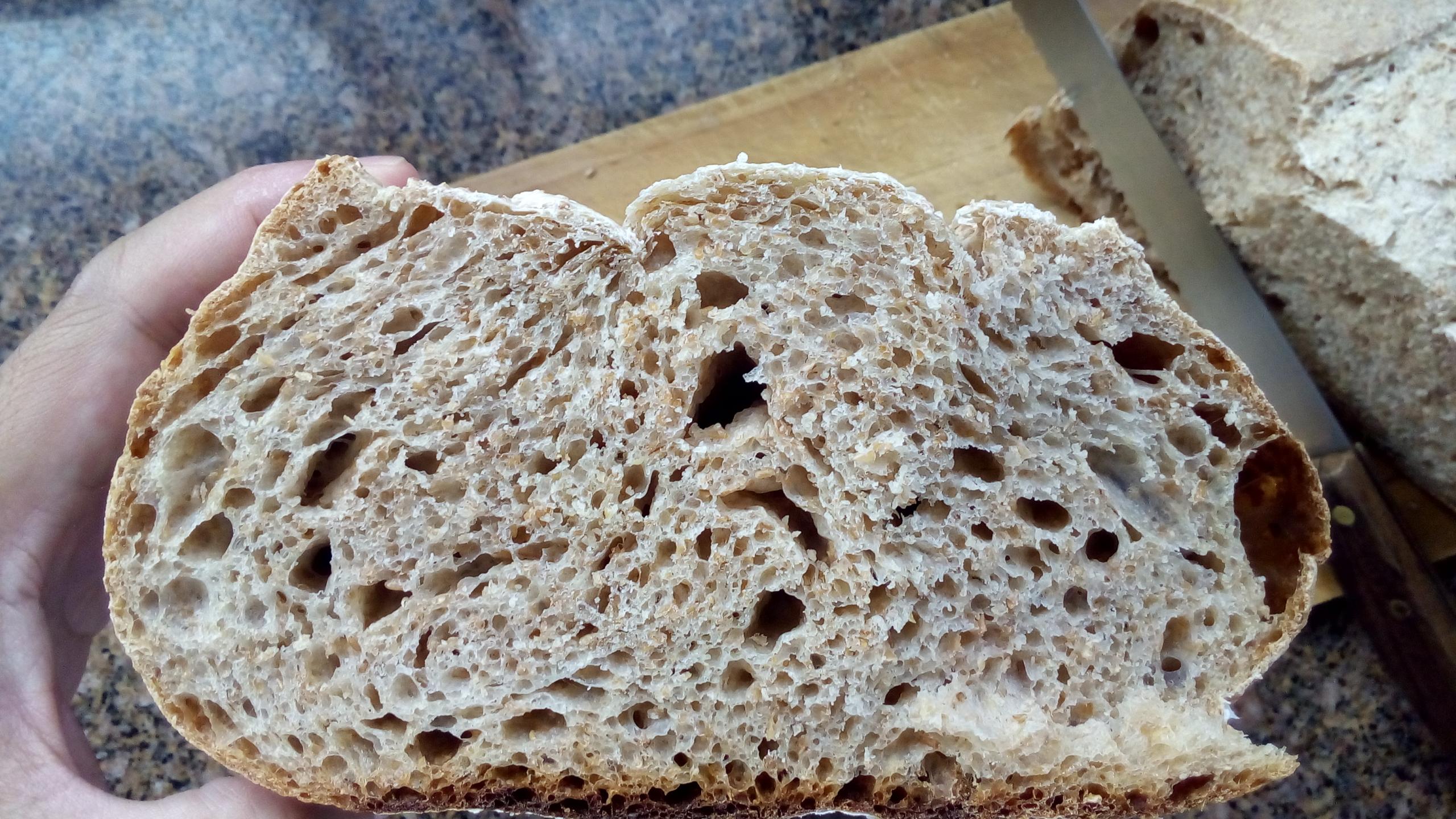 The crumb looks consistent and doesn't look raw or under-baked.  Congrats on the picture posting, it is almost as tricky as baking a loaf of bread!  You're doing Great!