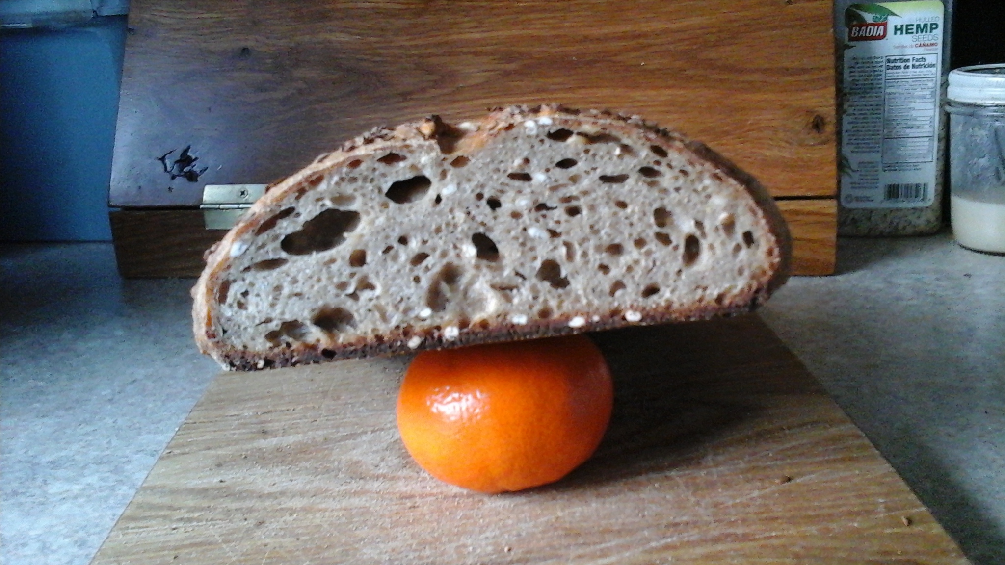 Bottom was a little too carmelized (cook speak for burnt) and it spread out too much but it is one of the tastiest loaves I've made for a while. Next time I'll turn down the heat a bit sooner and more.