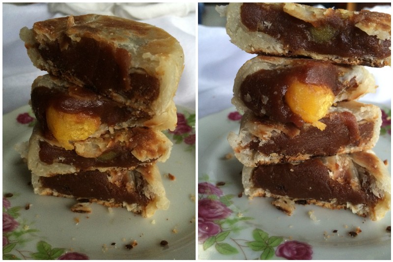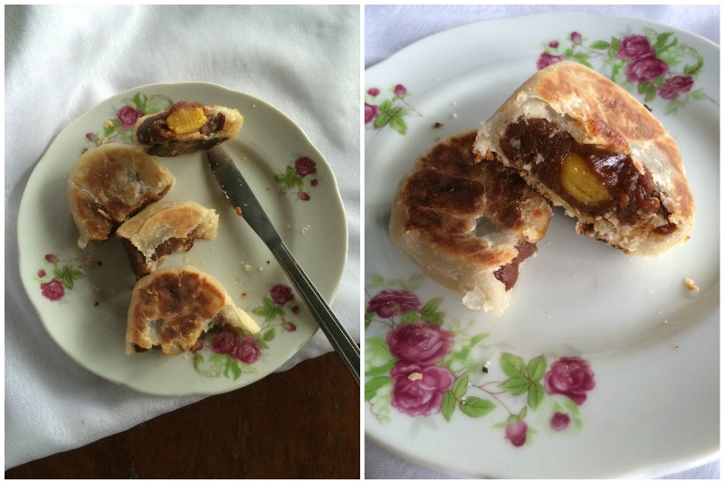 Remember last time when I posted an egg bread because of too many eggs? I turned some of those into salted eggs to be used in some dishes. A month has passed and it's time to use them, and what is a better way than to use them in mooncakes! I didn't bother to boil some to be eaten as is because boiled ones are readily available; I made my own because there are no "raw" salted eggs available in the market and those are what I need for dishes I'm planning to make. This style of mooncake is not as popular as the Cantonese one but it is equally delicious. I made this as a preparation for my Cantonese mooncake not because it's easier to make but I want to taste the combination of my salted eggs and homemade bean paste before doing something I've never done before. This requires a totally different skill set than Cantonese ones and I have experience with these before so I made this first as a warm-up.