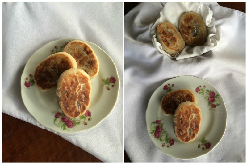 made in molds I don't have:-) I use banana leaves to make tamales all the time and prefer them over corn husks for the sweet ones so they should be great for sweet moon cakes! I quickly heat the banana leaves over an open flame to soften them and darken their color. They are easy as pie to use to wrap things in then - very pliable with no tearing.