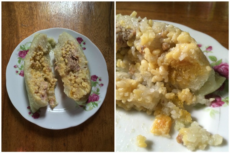 I grew up eating the Hokkien variety of rice dumplings so this one is good but different. Dad didn't like it very much unlike the mooncakes. I like this one especially the yolk, in fact I can eat it without the pork.