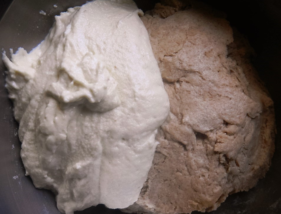 So Lucy tasked herself this week to get some flavor into this bread, increase its nutrition, improve its GI and still try to keep its dinosaur dump looks. First foo she tossed the 5 hour process and went to a very long one instead. Long means flavor when it comes to SD so that was good place for her to start.
