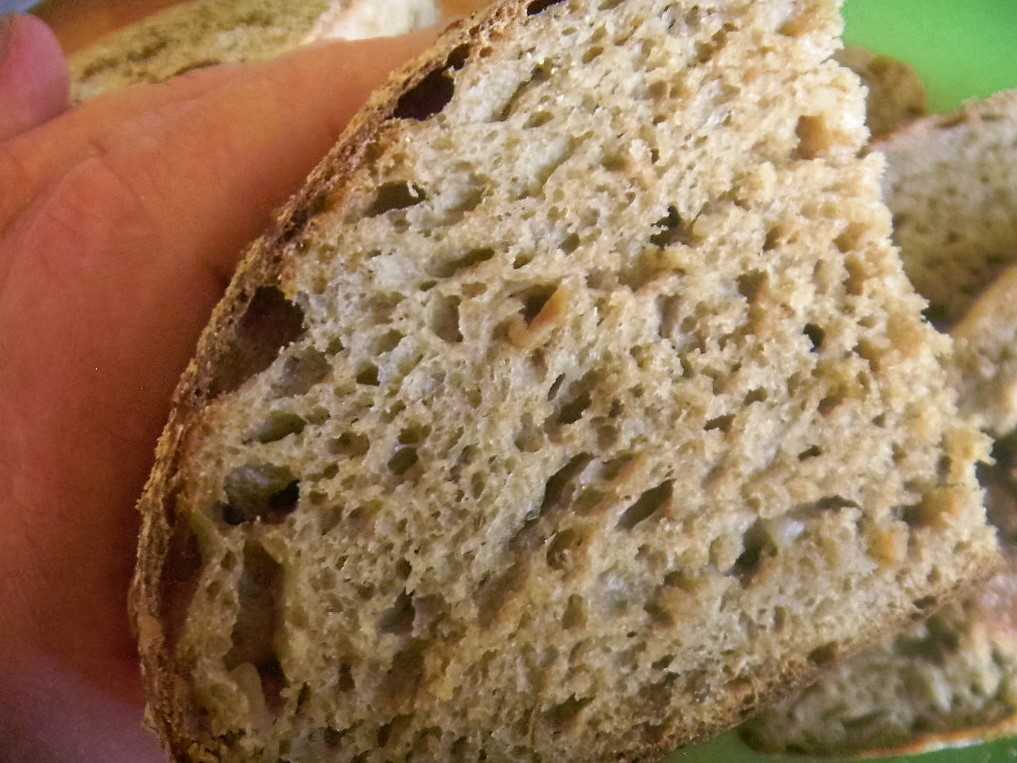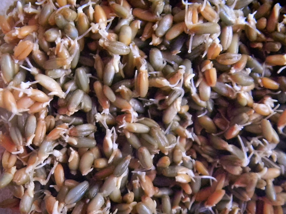 Once the whole grains were sprouted and milled, we sifted out the 15% hard bits and fed them to the starter to make the levain first and then the high extraction whole grains were used to finish it off. The pre-fermented flour for the levain came in at 15%