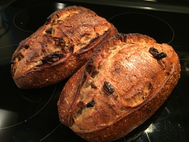 With an early get-away tomorrow morning for a road trip north for family affairs, I just had to get in two final bakes.  The first was the Hamelman Pain au Levain with whole wheat.  Which I've raved about endlessly.  For a twist, I aded some diced fresh apple and toasted walnuts.  The walnut flavor this time, having been toasted, came through strong, but the apple still held back on the flavor profile.  Back to the drawing board.