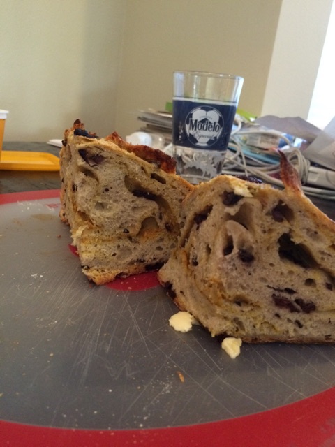 For hole fans, the bread ended up with an irregular crumb as a result of the olives and hot streak interrupting the internal structure. It had a nice soft chew and was earthy and spicy and delicious warm with butter. My wife did say it had a bit of cake-like texture while it was still hot.