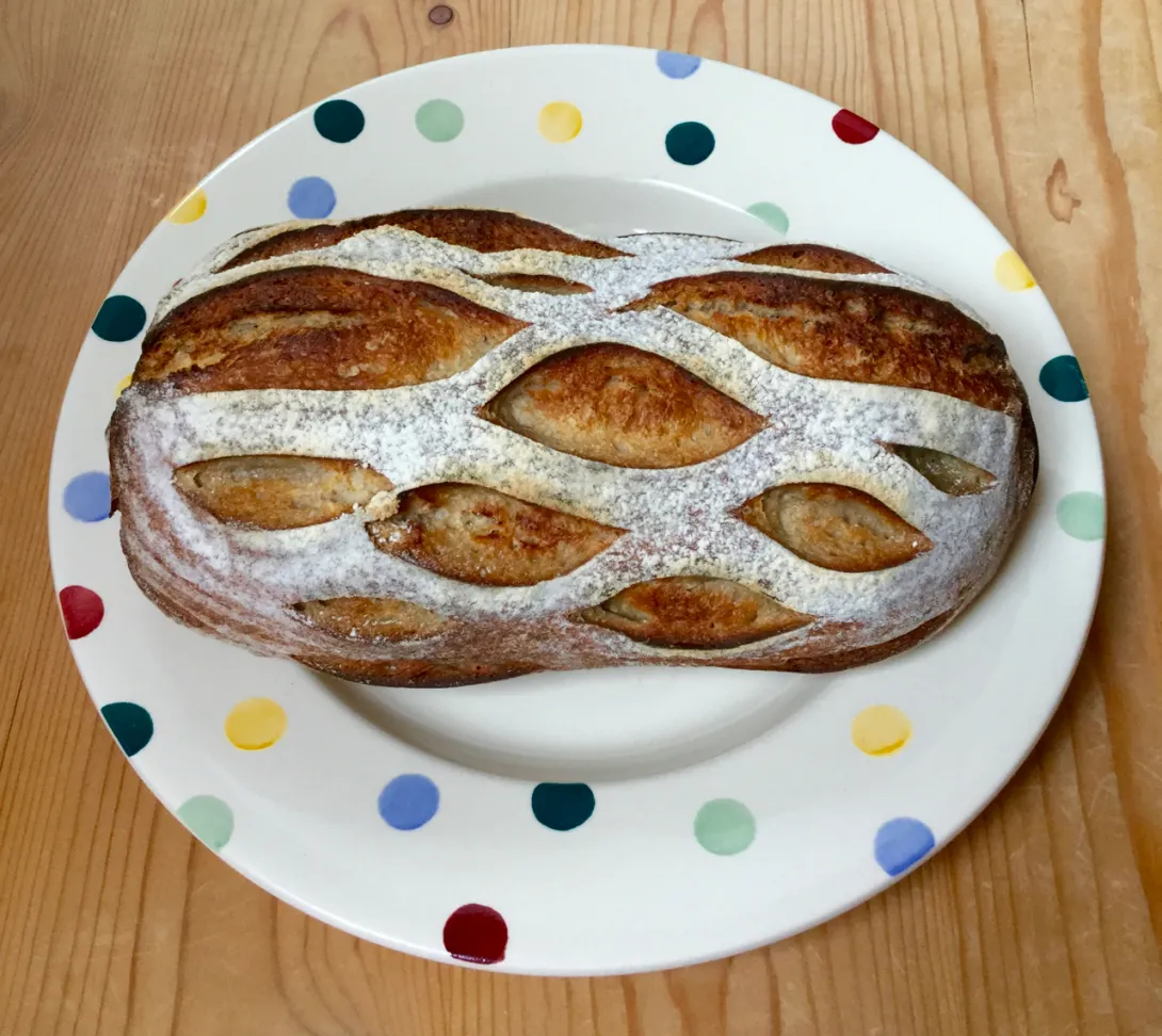 fancy polka-dot plate!  Way to go.  You won a jar of their 60 year old starter too!  Who said there wasn't a SD culture in the UK?  You wiil get to see the difference someone elses's starter can make.