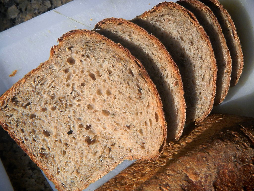 The only thing i can say is that it looks like you folded in the add ins or rolled the dough (no slaps here), because they aren't evenly distributed. I don't think this one was retarded, just because if Danni is right and its got a fair amount of rye i would think that you'd retard it?