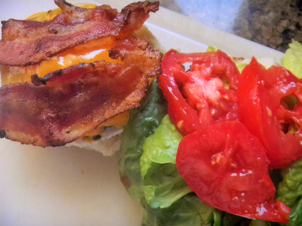 4th of July Bacon Cheese Burger with a Freedom Celebration Berry pie - blue, straw & rasp