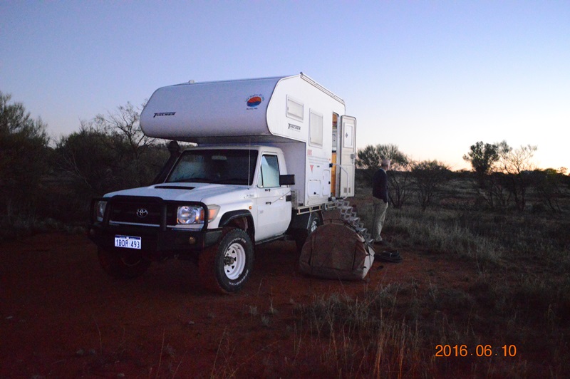 We set off in my wife's slideon camping vehicle a Toyota workmate V8 with a German Tisher slide on camper attached on the tray, i elected to also take my swag as neither Peter or I felt like sharing the double bed together.