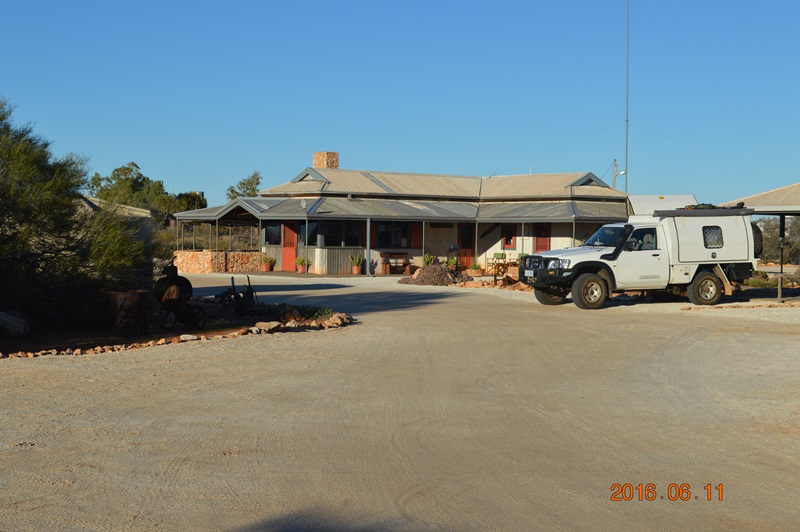 We were both up in time to see the sun rise and after a breakfast were on our way again, a quick stop at a remote Service station called the Billabong Roadhouse also gave Peter the opportunity to have a drive of the beast, there had been very few roadside casualties Kangaroos and sheep and certainly no fresh ones so i felt he would be fairly safe, he was cautioned about swerving to miss any of our fury friends. We did come upon a fresh fox that was providing breakfast for a magnificent Wedgetail Eagle where i explained to Peter that Eagles have to take off into the wind and if they had dined well can be quite slow and can become road victims themselves. Males weigh in at 4kgs with females over 5kgs and wing spans of 6ft and 7ft 7in respectively. Peter did slow down and the eagle did show all the characteristics that i had predicted and with the camper being quite tall may well have connected had he not slowed.