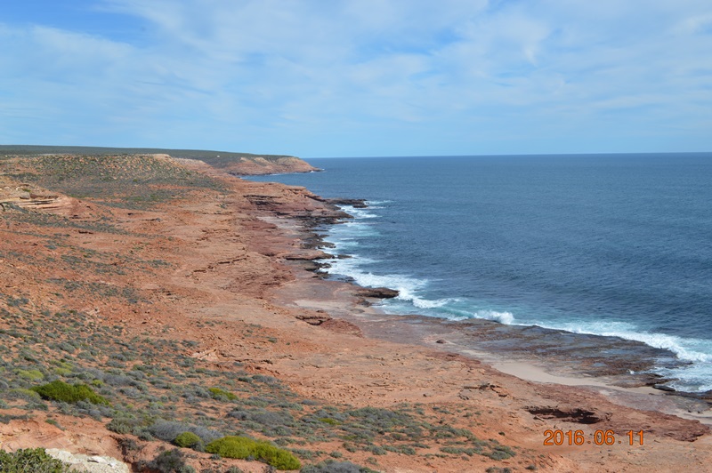 Kalbarri where the Murchison river enters the Indian Ocean was very pretty indeed. apparently it can be very busy in the summer with lots of visitors and even more flies,we were spared both. Again the local fish was superb for lunch, we stopped off at many lookouts to admire the views and could see dolphins and sharks in the clear waters below