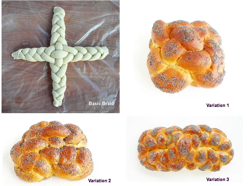 Four Times Three Bread Braid. 1 braid and its 3 variations