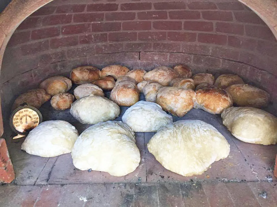 Bake at 475 on a baking stone for 20-30 minutes (or in a wood fired oven for around 15 - 20 minutes) until golden and hollow sounding when tapped on the bottom.