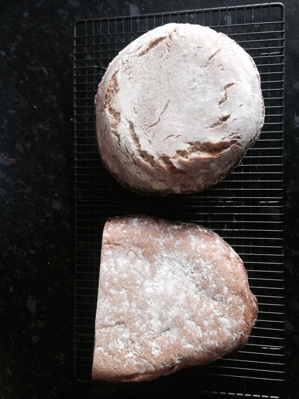 Both baked at 230C for an initial 10mins and then reduced to 210C for a further 40mins. Both (and most breads I've made) have had great oven spring using the stone, yet after the 50mins baking time the bottom surface looks nothing like the rest of the bread.