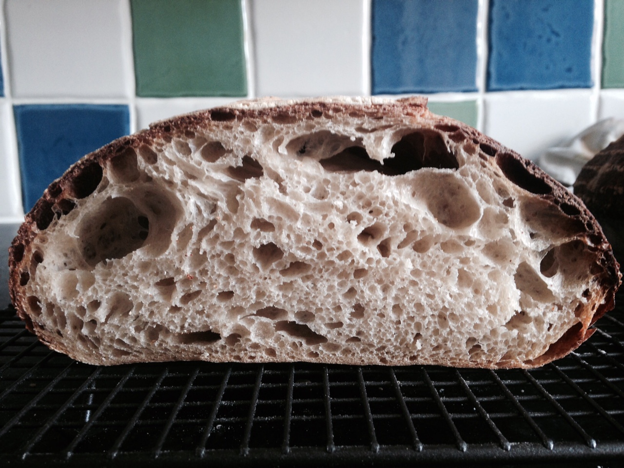 Though must be said I've been having this under-baked bottom problem for quite some time now. And that was with normal quick white breads also, where I've simply used commercial yeast with way shorter ferments and proves. Unless I've always been over proofing my breads? Though I doubt that has been the case. I've had lovely consistent crumb structure with the addition of under-baked bottoms.