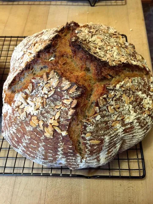 The only part I was concerned about was the dough spreading all over before I got it into the Dutch oven. So I unmolded it onto parchment paper and used that to get it where it needed to go. It actually held its shape so I probably worried needlessly. I am so used now to baking right out of the fridge that anything that isn't cold stiff dough gives me cause to wonder if I will have a pancake instead of a boule.