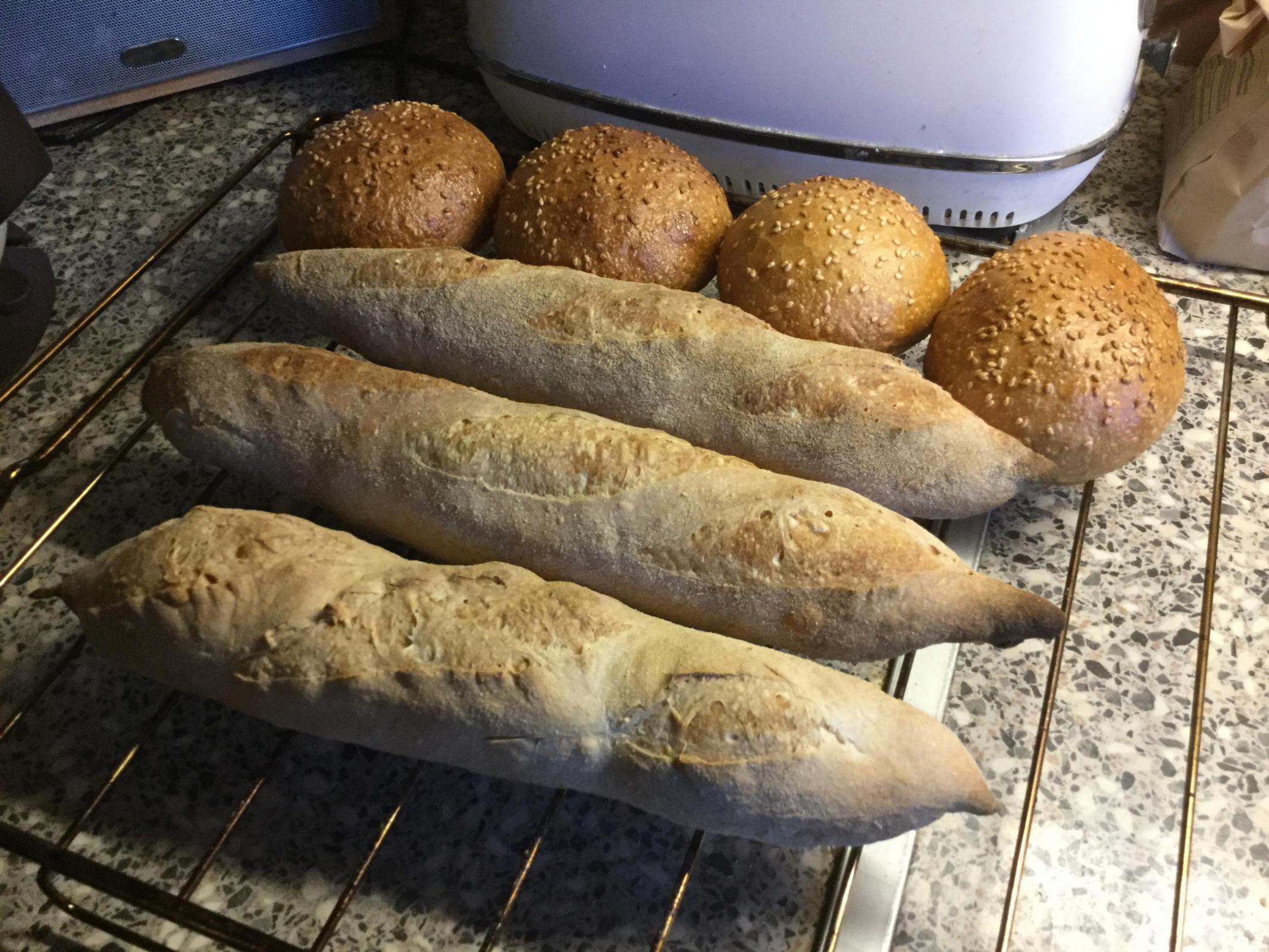 Baguettes were 170g each and buns were 90g each