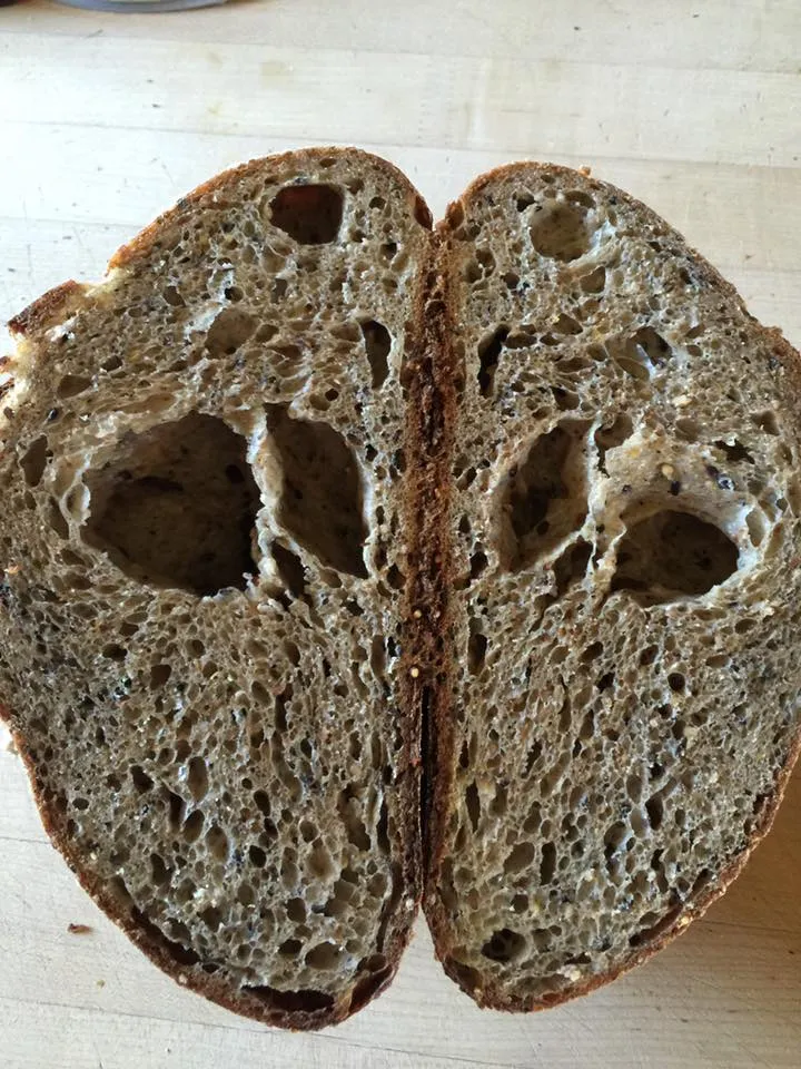 Okay, gurus of sourdough, what happened? Under proofed, not tight enough shaping, not enough degassing, what? This is a first for me! I love an open crumb but this is ridiculous!