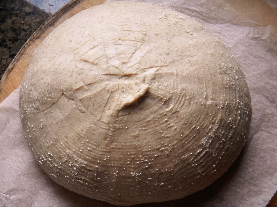 I then had a great idea.  Since this was only going to be in the fridge for 8 hours and then on the counter the next morning for 2 hours before hitting the heat, much less than our normal and baking straight out of the fridge, I thought it might be a sloppy mess after warming up and a terror to slash.