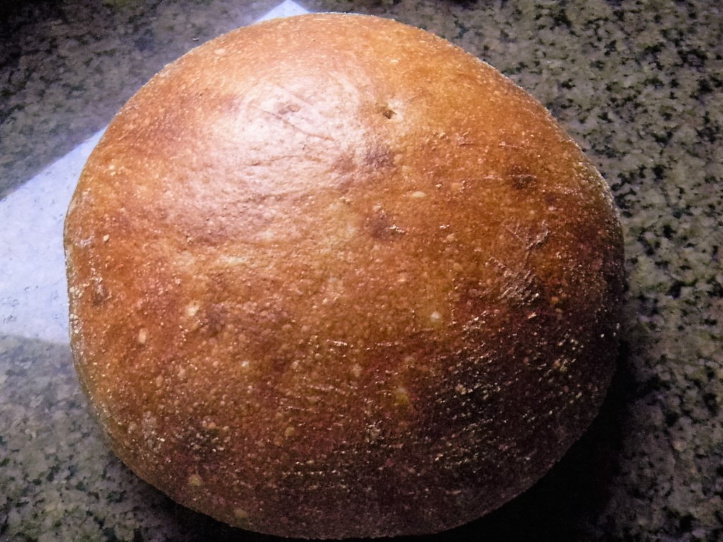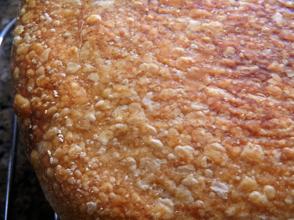 For some reason the bottom blistered the most.  I didn’t get done in time to cool off before I had to head out to the dentist 5 minutes away so I left it to cool.  It did smell grand so, when I got home, I bagged it up still warm at 100 F and ran it back up to the dental office.  When I delivered it she said she was going to slice it up and they were having it for lunch right then and there.