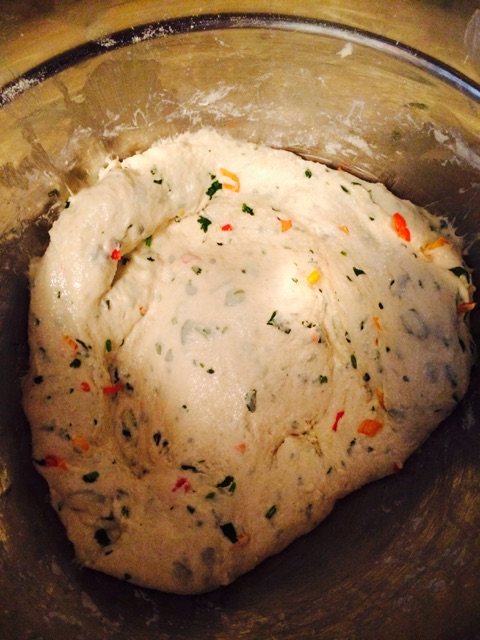 The star of this bread was the peppers, and the heat from slicing them made me sweat and feel like manopause or something. Even using a knife and fork, it was intense. I never even touched 'em until the minimal kneading and stretch and folds. The dough itself quickly acquired the heat, and a small sample was enough for me. I never even tasted this bread.