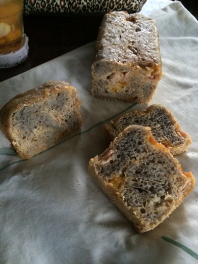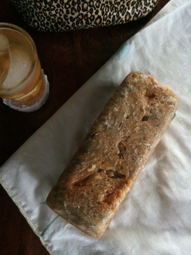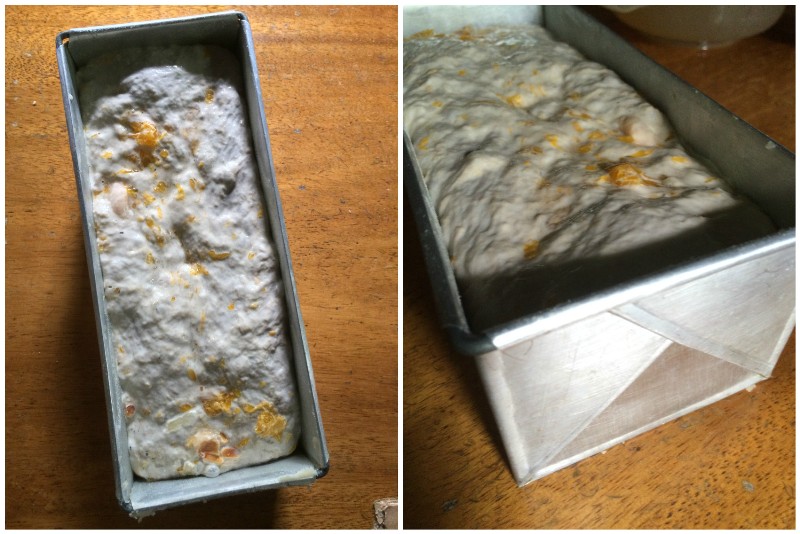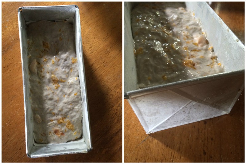 I tried to shape it into a log on a liberally floured surface but it was futile so I just dumped the whole thing into the greased and floured loaf pan and proofed it at room temperature for 2.5 hours.