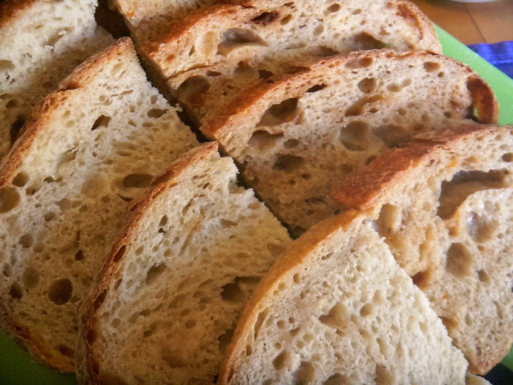 The white bread is more lofty but the herbed one is more open and has more irregular holes. Who knew?