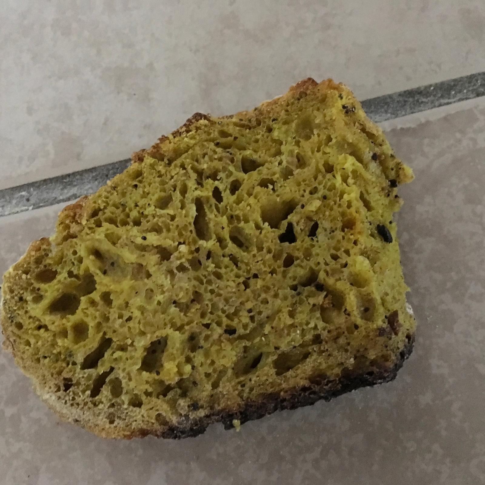Crumb was great and I love the color, the bread had a wonderful flavor, tasted like an onion bagel with a strong sourdough tang (likely due to the stiff starter and long fermentation).