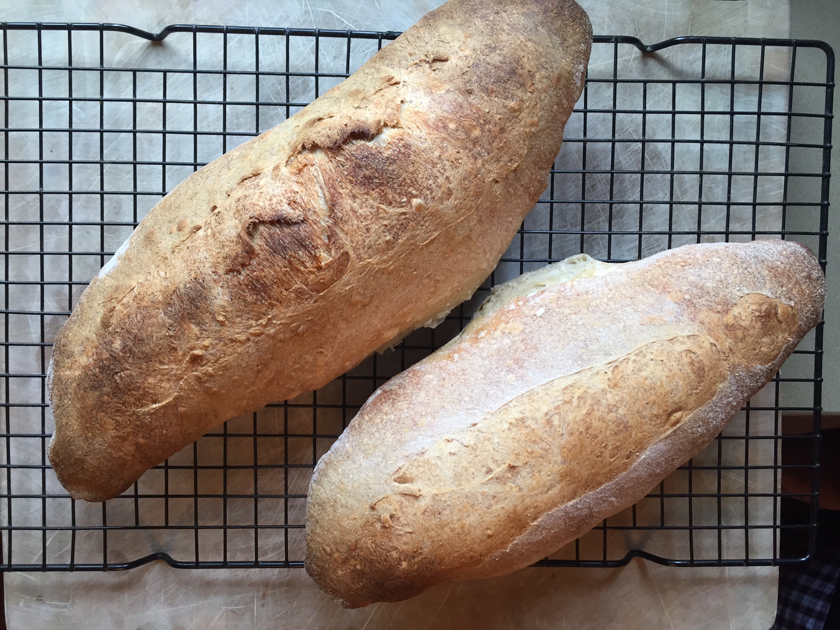 I cut the smaller one tonight and found the dough towards the middle of it's length definitely more dense than the ends. And some of the holes throughout would make me think it was a bit over-proofed. Maybe my starter was 'too active'? Lastly, yes, i tried to slash, but again found the dough pretty slack when I did (again little surface tension) - and of course I'm not quite yet there at getting a good slash just yet. I'll definitely try this again. All advice welcome. Thanks..