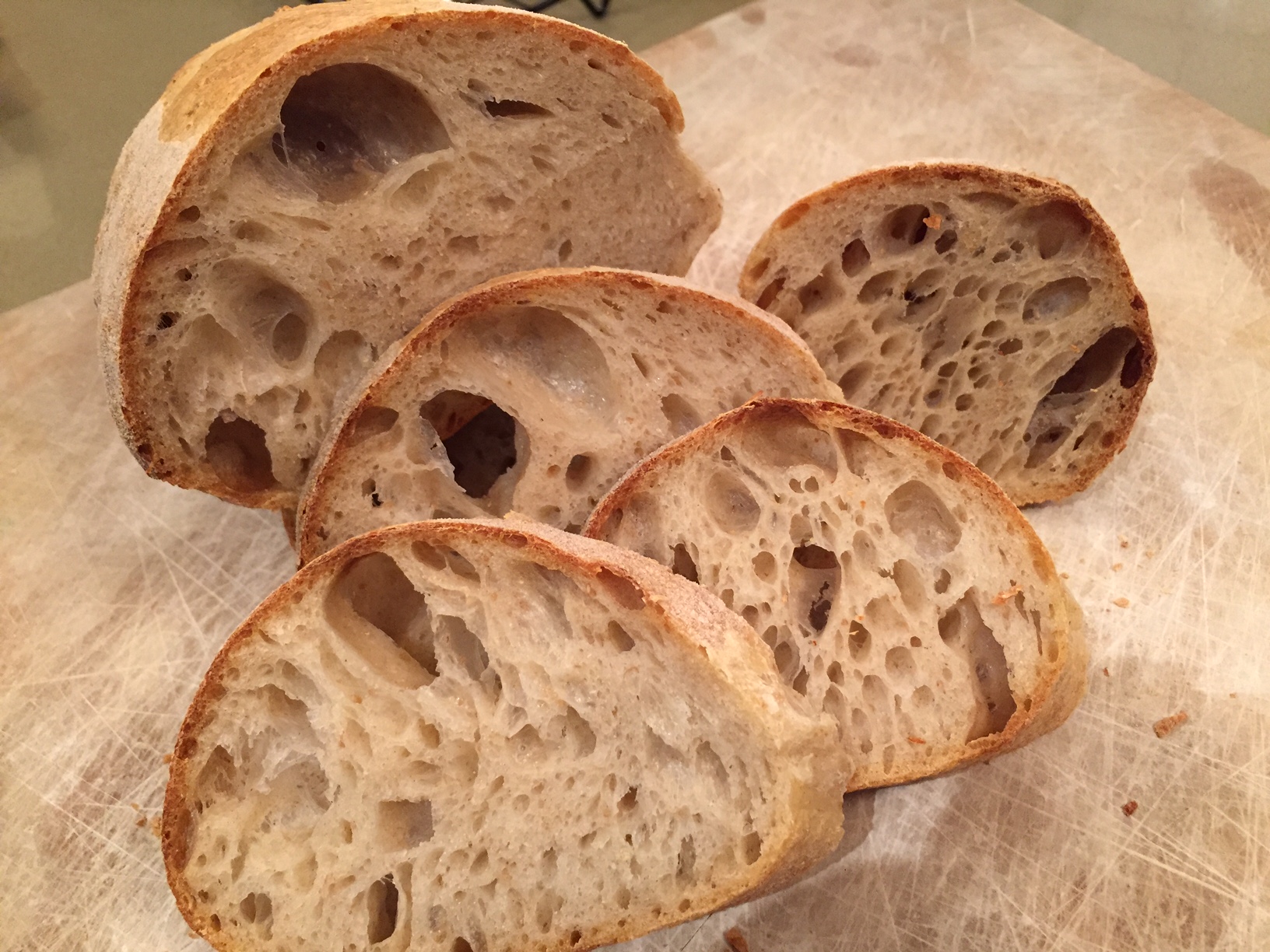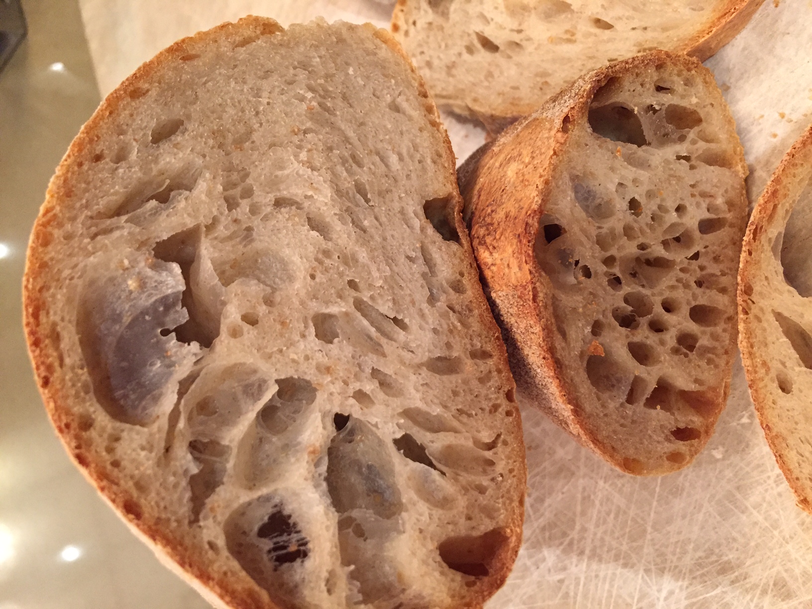 this one shows the bottom part of the loaf much denser/moister in the middle of the batard..