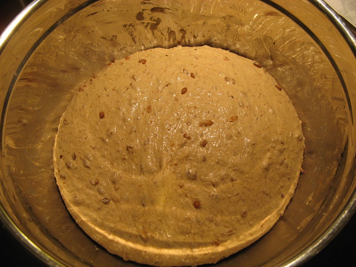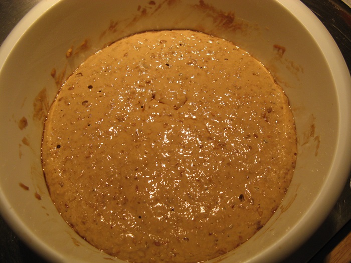 I then mixed all the cooked, cooled grain into the soaker water as well, than added all the flours and let autolyse for about 45 minutes.