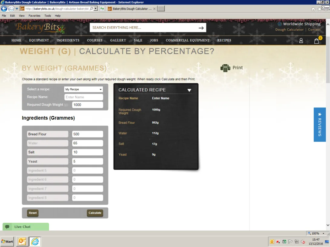Enter the required dough weight in the top left hand box. Below it fill in the recipe you wish to convert. Click on the calculate button. Voila! Your new converted recipe appears on the right.