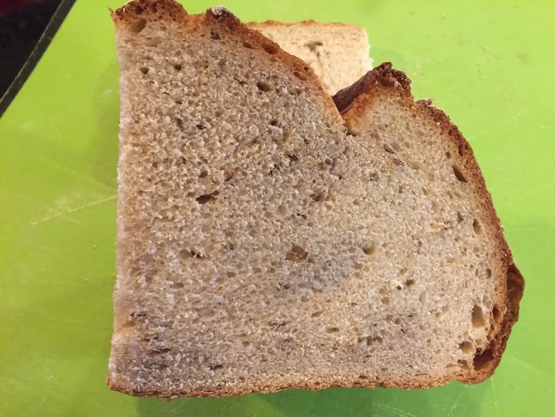 Starter had 3/4 cup bread flour and 3/4 cup rye flour. Flour mixture then had 2 1/2 cups bread flour.
