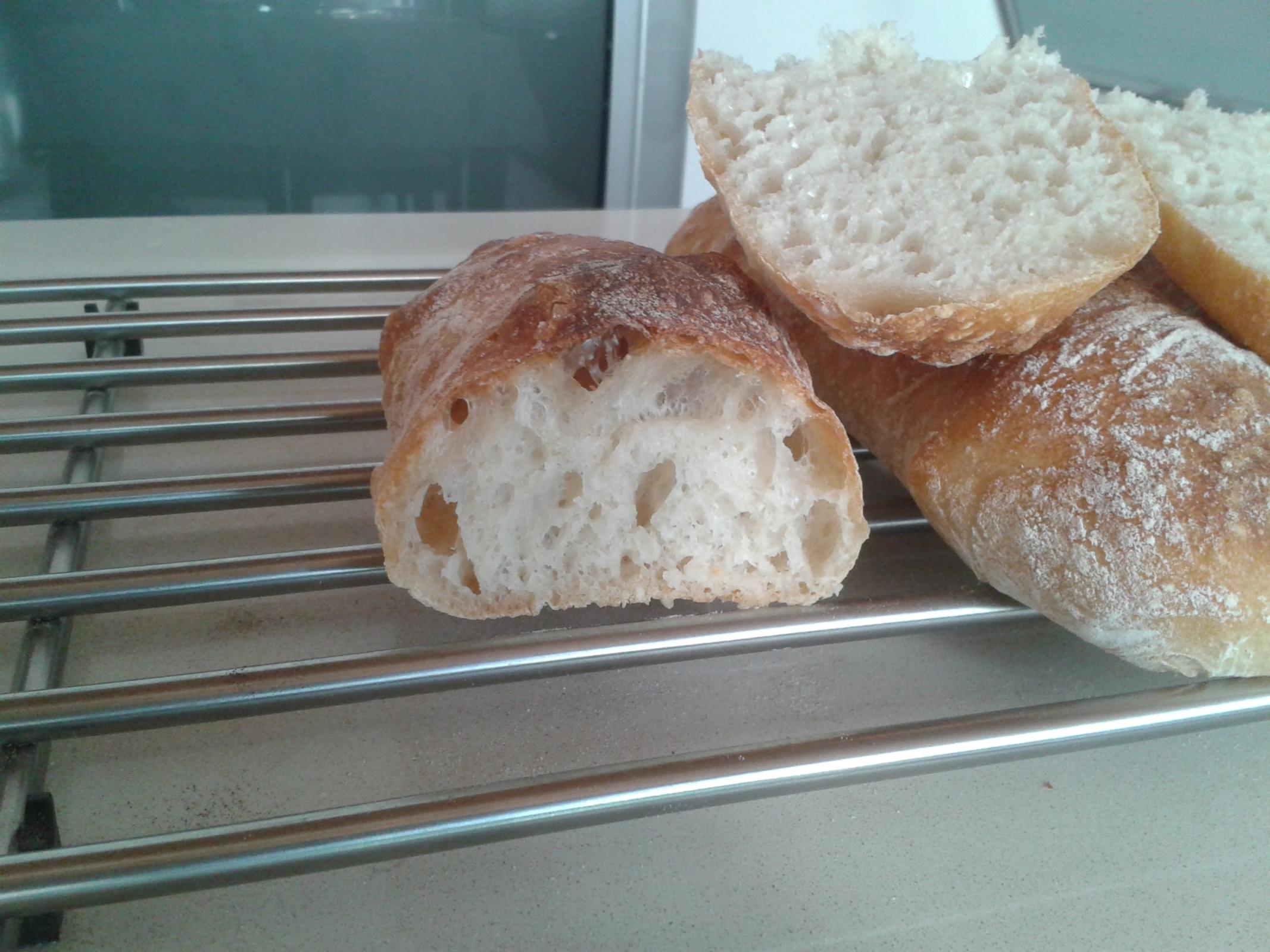 is that the dough is wetter ,110-120% hydration, and there is some sugar in the dough to make the crust even thinner than ciabatta and more like a thin pane of glass that shatters. Sometimes there is some olive oil in the mix too. The crumb is even more open than ciabatta........ if that is even possible. At 100% hydration, this one is certainly getting toward a very wet ciabatta! It came out lovely! Well done and Happy New Year!