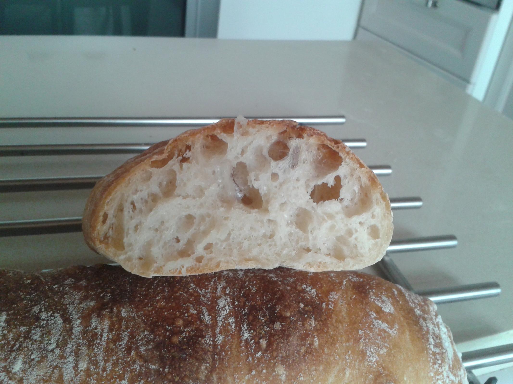 You are right. I edit the recipe, malt 3 g. Of ourse crumb must be more open than ciabatta. My bread has to be improved.