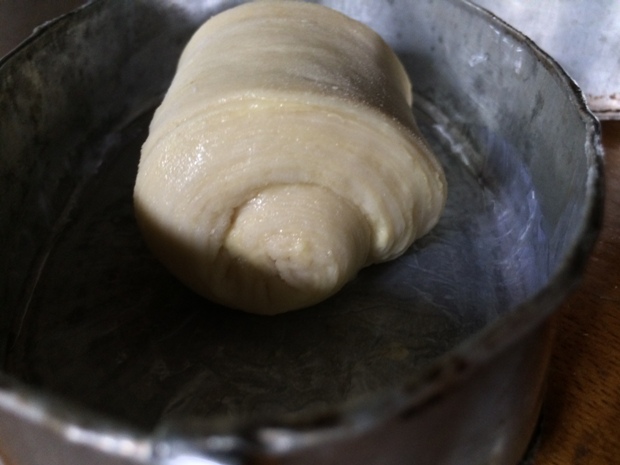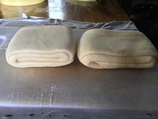Next morning, I woke up at 10 AM and performed the first turn. After a 1 hour rest in the fridge, I performed the second turn. I only performed 2 turns, un tour double et un tour simple (at 27°C / 82°F). Because the dough was too strong, 1 hour is not enough to relax the gluten so I struggled a bit in the turns but as I said before, my steel pipe and large hands are great help and I was able to roll the dough to desired dimensions.