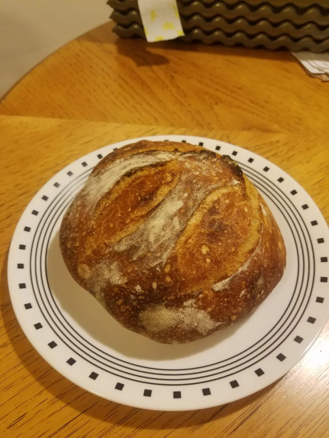 weren't invented yet:-) It would be good to see the crumb on this one but the outside looks pretty good. Bake it to at least 205 F on the inside and the gumminess will be gone. Well done and happy baking