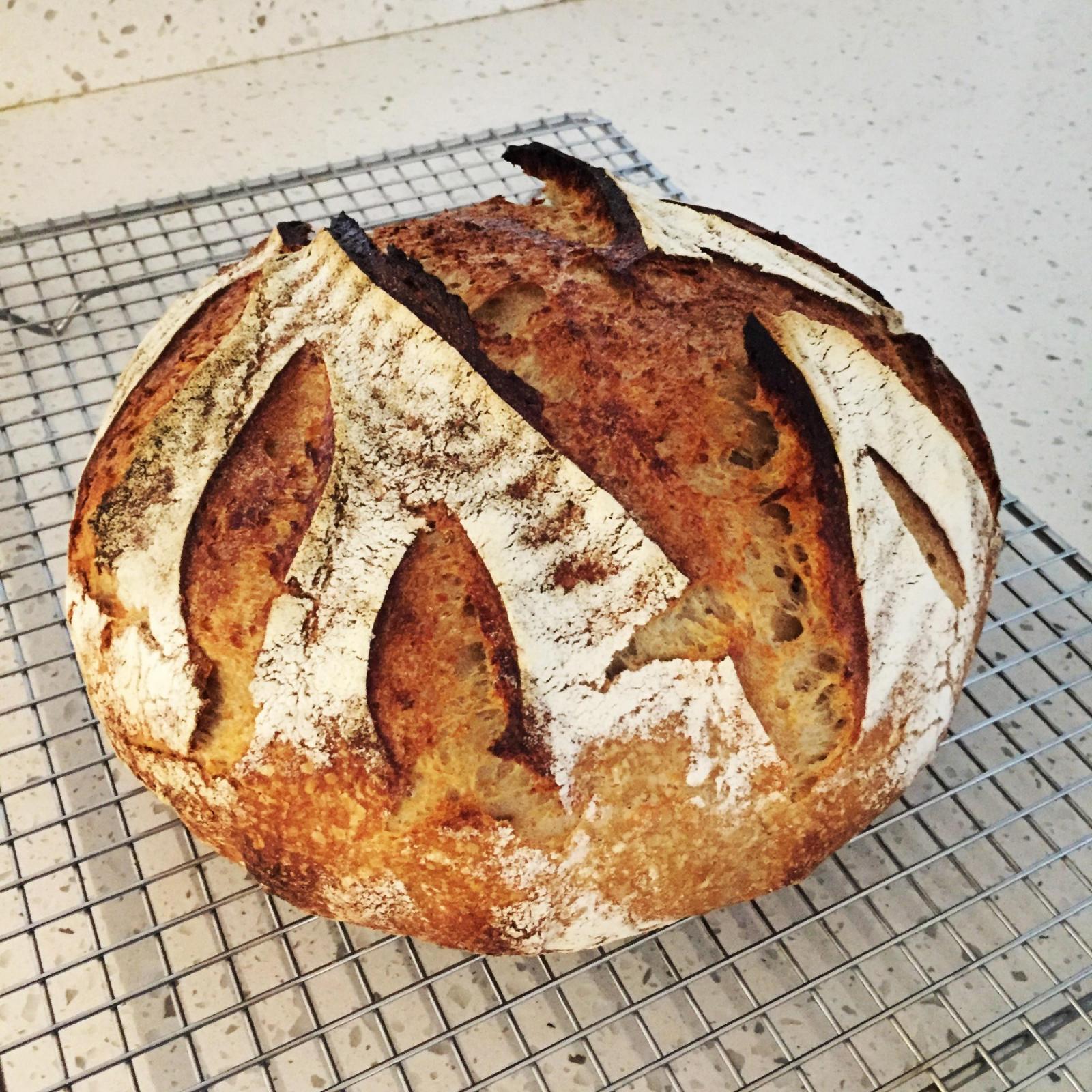 A little time and more patience was what was needed (and more feedings to revive). I also think I did put the starter into the fridge a little too early, Mini. I know have a more vigorous starter and a second success! Half freshly-milled spelt and einkorn: