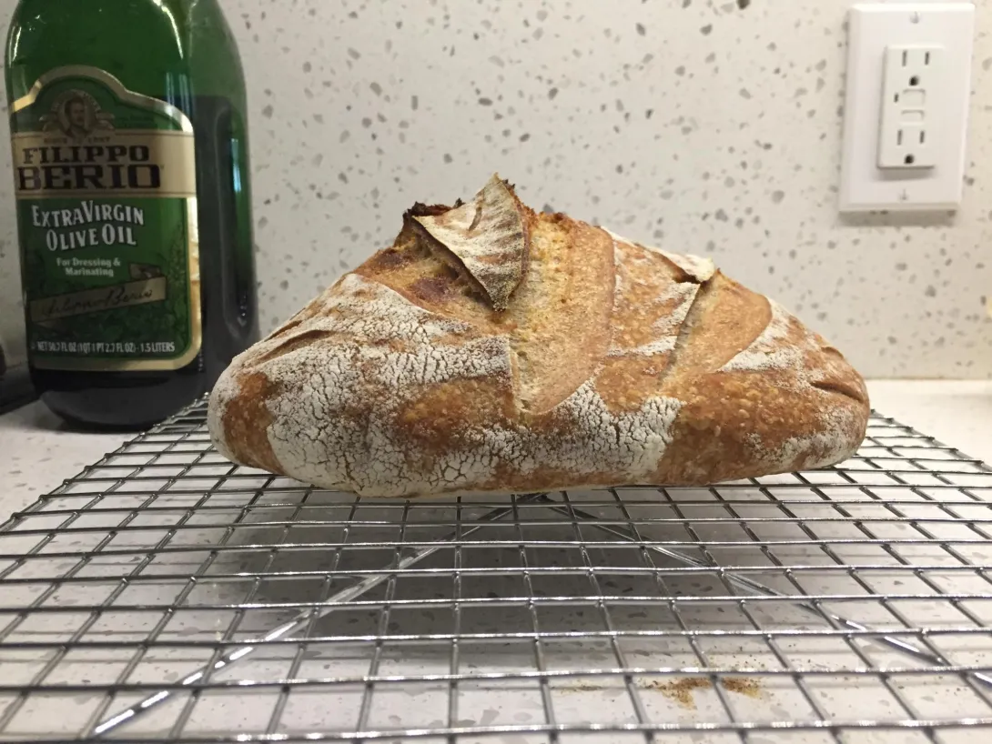 I then put my starter in the refrigerator because I only bake on weekends. I took it out on Wednesday night and fed it three times before attempting to make another levain. The levain didn't pass the float test after 7 hours, but it was bubbly so I proceeded. This is what I got this weekend: